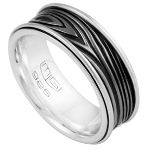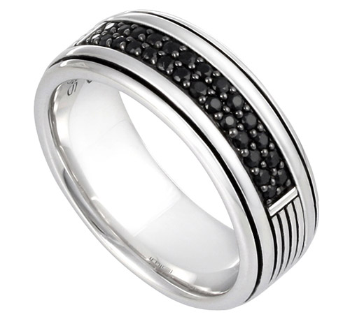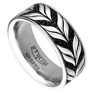 CREST BAND – Sterling Silver, Black Sapphire – 9mm W – from the MG CREST COLLECTION